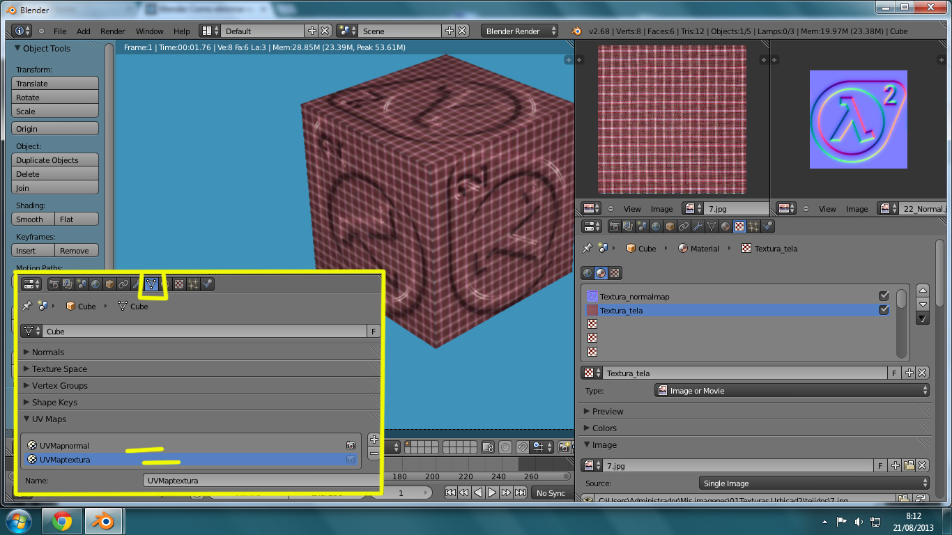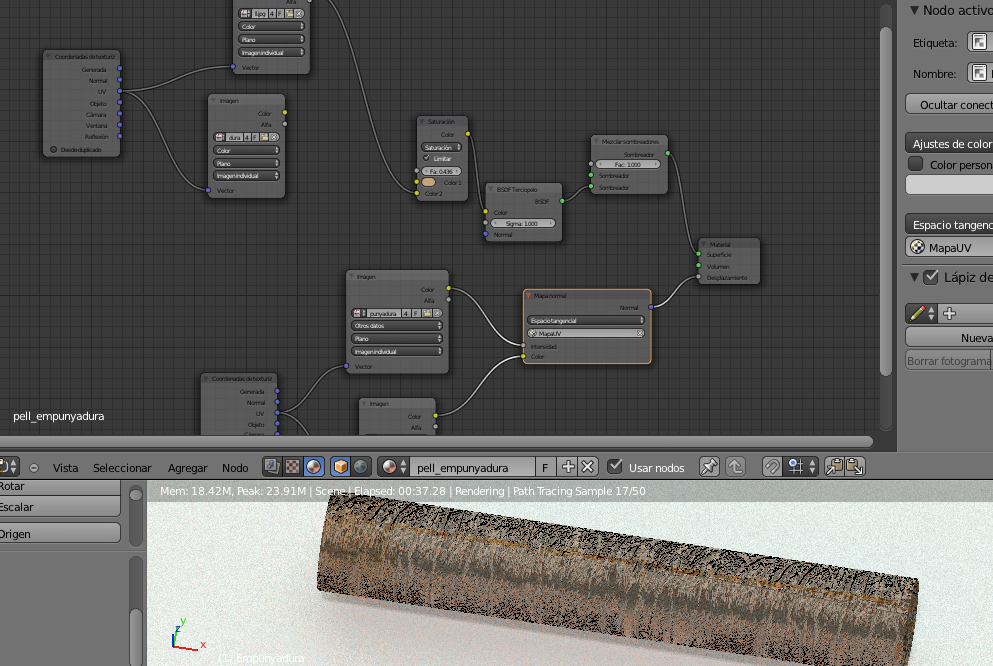 Si, por ejemplo, estas poniendo el mapa de normales (normal_map) y a la vez pones una textura de image (la imagen del cuero) tienes que tener dos UV diferentes dentro del mismo MATERIAL: