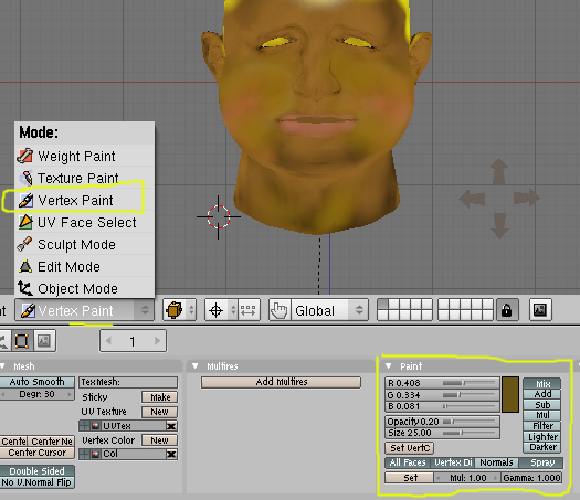 Solo he dado un poco de colores a la cara y una vez terminado he presionado el botón VCol Paint.