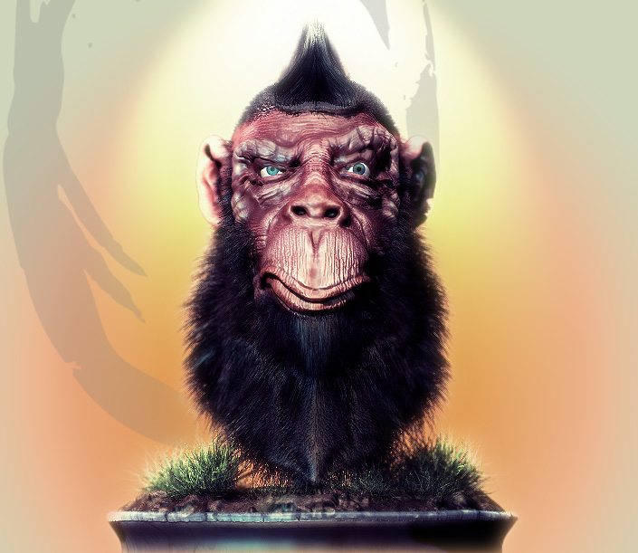 Buenas, hace unos días comencé un simio, en principio quería mostrar algo más serio, pero a medida qué fui desarrollando vi otro concepto diferente que mostrar, algo más informal, modelado y render en ZBrush, composición final en Adobe Photoshop, saludos.