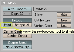 Presionamos F9 y en la ventana Mesh presionamos Retopo y nos saldrá otra opción de la cual seleccionamos Paint.