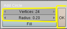 Lo primero que vamos a hacer, es colocar un círculo de 24 vértices y le pondremos un radio de 0.20.