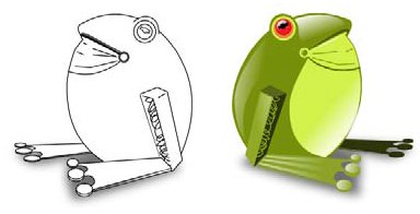 Después de haber hecho diferentes experimentos 3D con juguetes antiguos, (Zomer and Awesome monkey), dejé de lado la idea de modelar juguetes reales para crear mi propio artefacto 3D. Buscando borradores (dodles) en mis cuadernos, encontré una rana qué deseaba modelar.