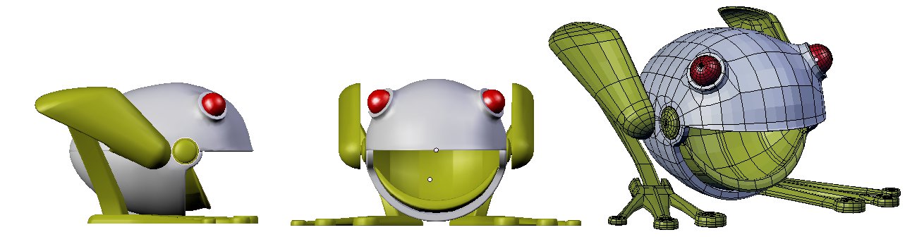 Para el caso concreto de nuestra rana, experimenté con muchas configuraciones de sombreadores (Shader), tanto en el motor interno de Blender y como en el render YafRay, obteniendo diferentes estilos.