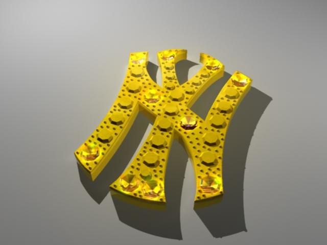 Buenas el cuervo no lo veo mal, aun así el modelado creo que la n tiene más curva te dejo, una imagen ahora. Respecto al dorado si es dorado, yo personalmente y si vas hacer una animación del logotipo de los yankes, viendo los colores del logotipo que suelen ser en azul o el negativo en blanco me iría por un cromado te quedará más agradable con los tonos azules y rojos, que el dorado, lo veo un poco como un broche no sé si es eso lo quieres conseguir.