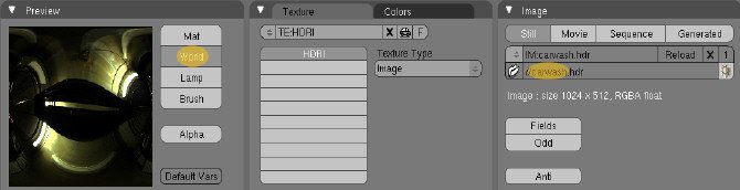 iluminaciones y medio ambiente. crearemos materiales de reflejo y refracción, así que, para crear un medio ambiente de refracción me gusta usar un mapa HDRI mapeado en el medio ambiente de la escena. Para hacer esto ve al botón textures (f6), y crea un nuevo mundo en textura de imágenes. Elige carwash, HDRI (o cualquier otro) como en la figura 4.
