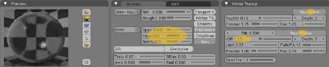 Dentro, duplique el primer material y removí el golpe. Intenta un diferente factor de refracción y observa lo que ocurre.