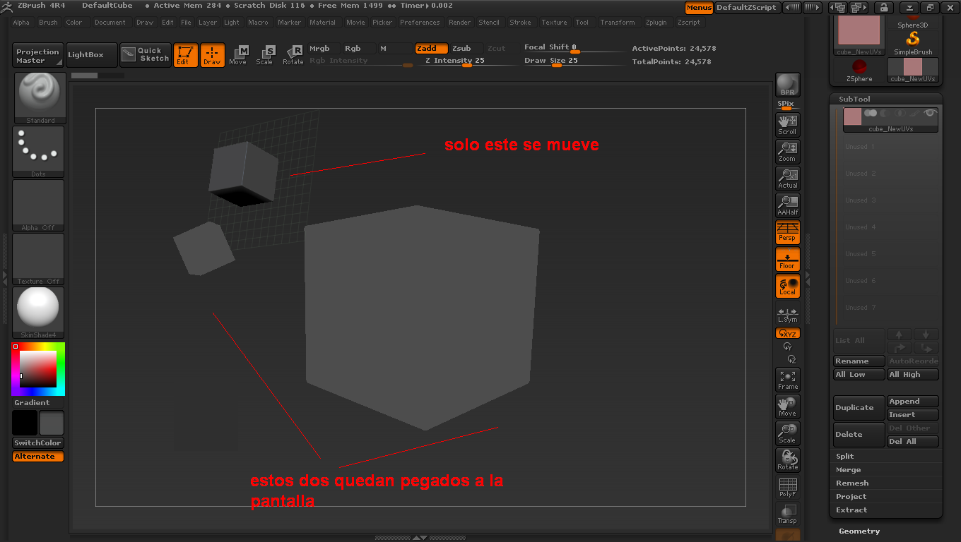 Cuando dibujo varios modelos en la escena solo uno se puede moldear los demás se quedan pegado y tapan al que se mueve, por que pasa esto? -- IMÁGENES ADJUNTAS --