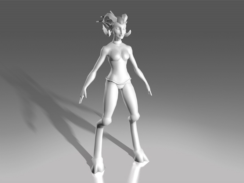 Automáticamente comencé con la fase de modelado, empezando por la cabeza y utilizando la técnica de punto a punto. Para el cuerpo he usado uno de otro personaje que tenía a medio hacer, adaptando las proporciones y la anatomía a la del nuevo concepto, lo cual me a ahorrado bastante tiempo de trabajo: