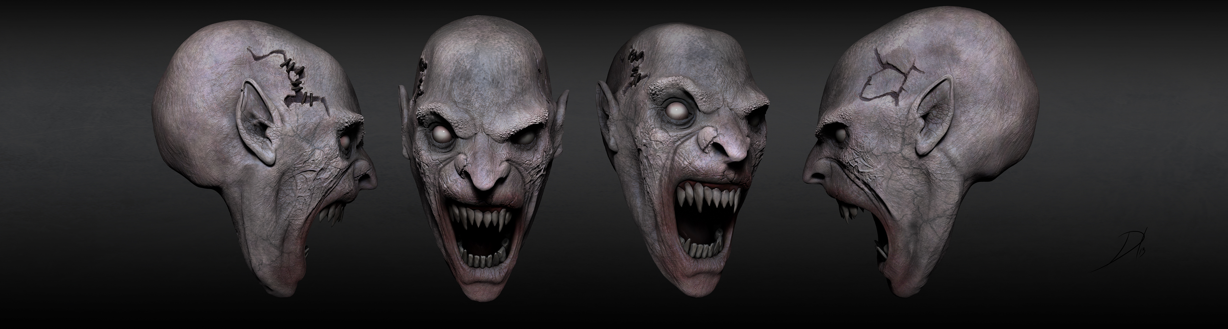 Sigo con el modelado 3d sin parar. He terminado una cabeza de Vampiro y le he dado un poco de color. Subo una composición.