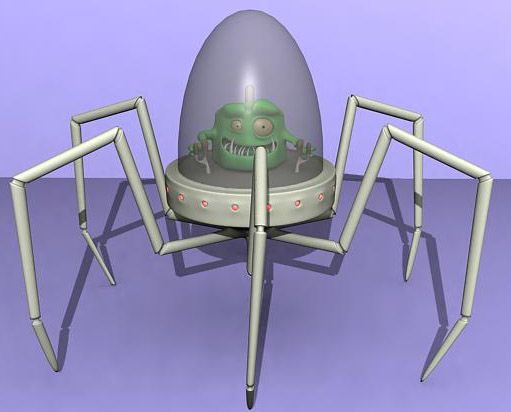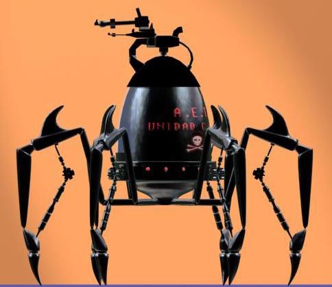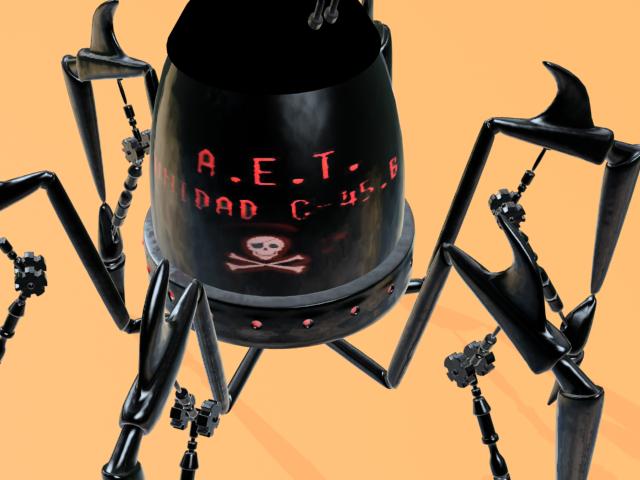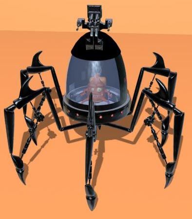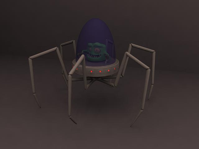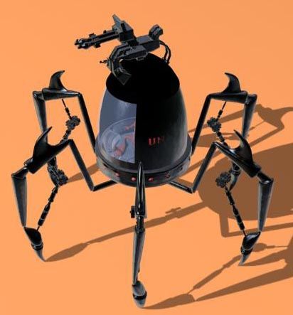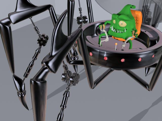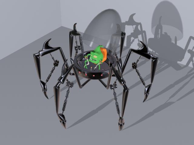 El dragón lo dejo parado por ahora, y cambio de época. Un bichejo que maneja un robot araña. Siento que este tan oscuro, pero ahora me tengo que ir, ya lo pongo mejor otro día. Un saludo.