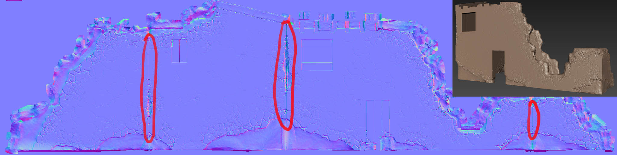 Hola, estoy haciendo mi primer modelo con Mudbox y tengo un problema con las normal map. Adjunto un par de imágenes. La malla low la tengo modelada por fuera de la malla en hight y con sus UVS desplegadas. En las aristas convexas me hace un relieve indeseado que no sé cómo quitarlo, he sacado las normales desde Mudbox y desde Xnormal, los dos me dan el mismo resultado. Cada cara de los muros los tengo en un grupo de suavizado diferente y las zonas rotas las tengo en otro para qué se vean suavizadas. Lo he intentado con. FBX. OBJ. SBM y nada. Os agradecería una ayuda. Saludos.