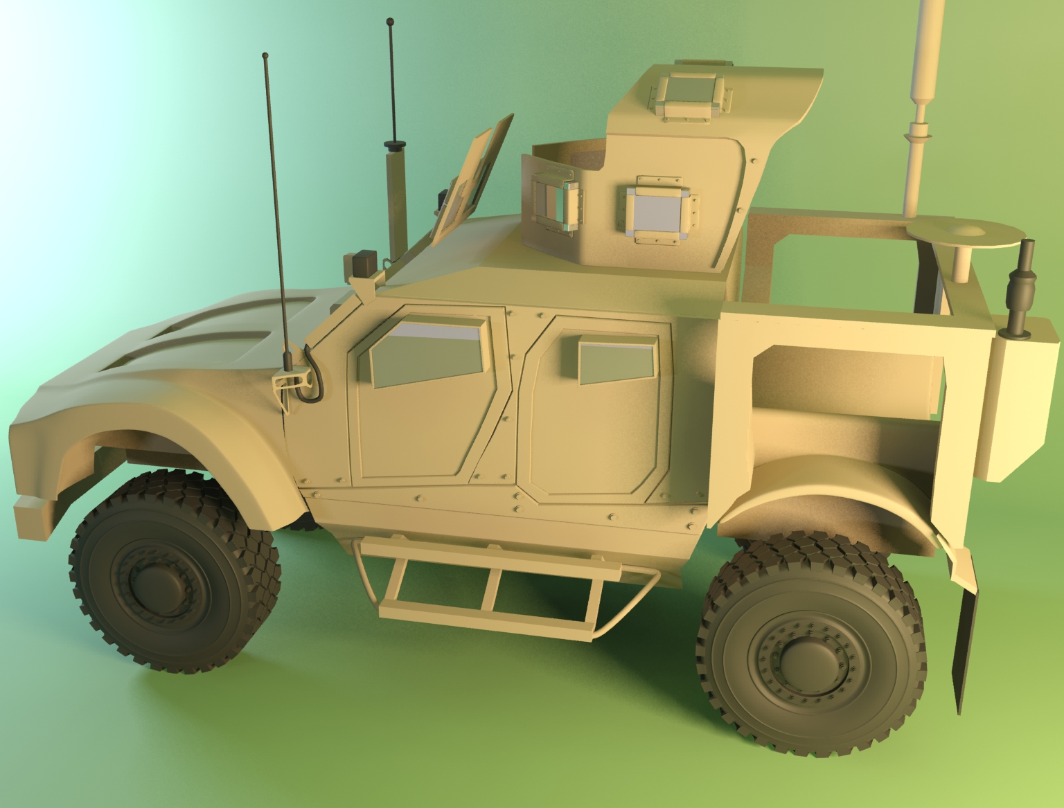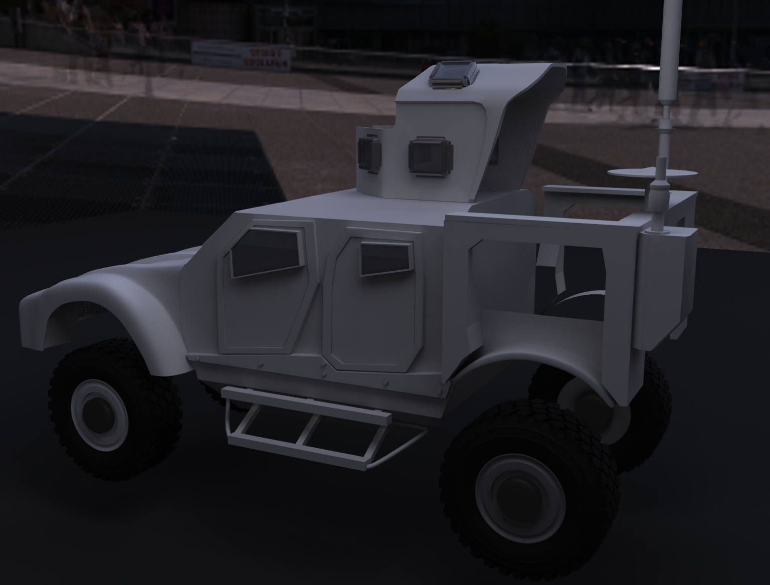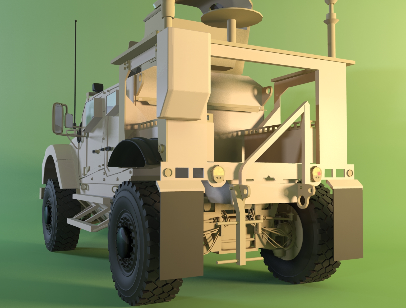 Aquí un avance del chasis de la parte trasera, he agregado muchas partes, muy difícil, pero estoy contento como va quedando, hey Karras pues no tiene reflexiones la armazón de este vehículo el material que lleva es seco y sucio sin reflexiones, tal vez lo ensucie un poco, pero por lo pronto tendré que terminar el modelo y tal vez alguna integración con alguna fotografía real, aquí agrego una fotografía del original también, cualquier crítica o comentario son bienvenidos.