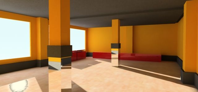 Hola a todos. Os pongo una escena de una sala grande, con un ventanal con luz solar y suelo de parquet. El caso es que sale un reflejo extraño que me tiene despistado, he bajado el Glossy y reflexión del suelo, pero sigue saliendo. ¿alguna pista?