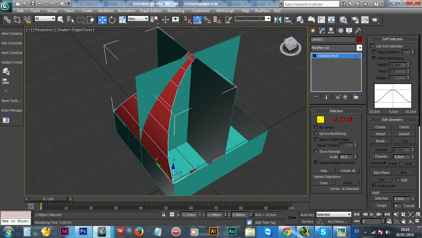Antes de attachar a la Box, escalo el borde para ajustar el ancho, con Software Selection activado.