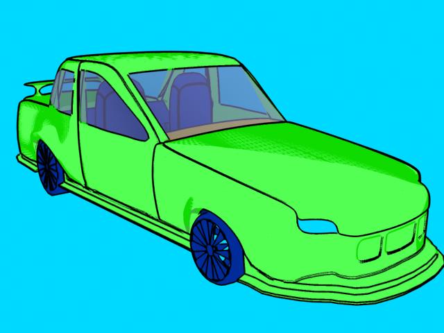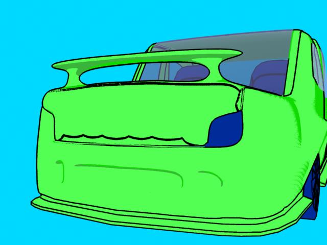 Max, XSI, Autodesk Maya, Blender, Cinema 4D, LightWave, Animation Master. ¿Qué estas usando? Yo le metería una textura aplicada al capó (por UV mapping si quieres un ajuste controlado) con el canal alpha activado. Saludos.