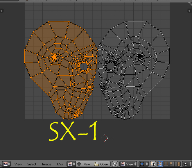 Esto te daría dos partes en el editor UV, pero escalando en negativo (SX-1) una de las partes, tendrías la malla como duplicada, por lo que solo debes ponerla encima de la otra y todo lo que pintes o retoques, actuara en las dos caras.