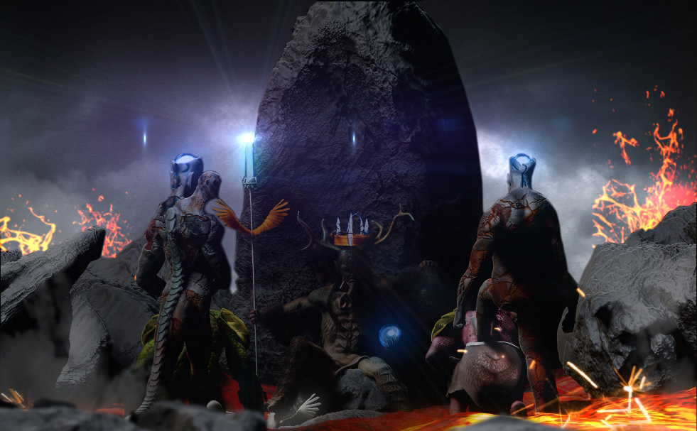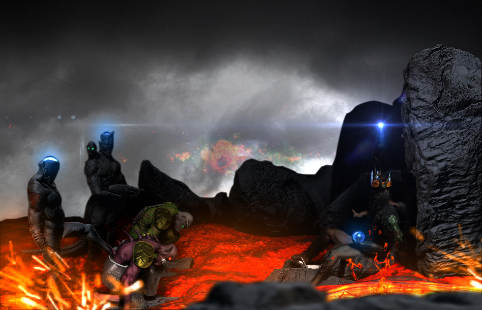 Tiene detalles que me gustan, la lava, la textura de roca detrás del dictador, el desenfoque de las rocas del primer término, las salpicaduras de lava.
