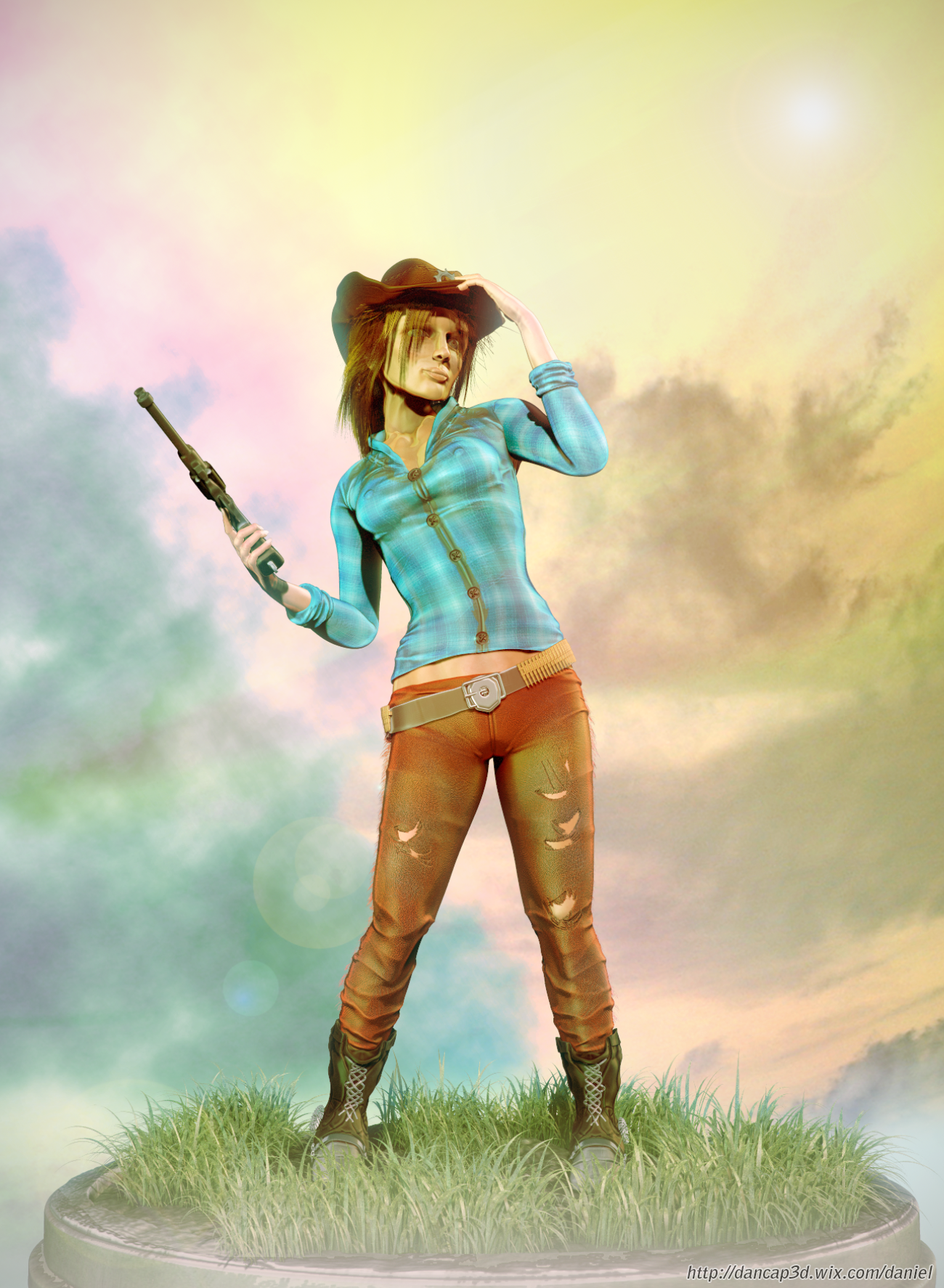 Saludos, comparto el trabajo en el que estuve metido estos días, una pin-up vaquera por lo menos es el aspecto que quise dar en el acabado, aquellas pin-ups de época. Malla base de el cuerpo realizada en Softimage, ZBrush para esculpido y detallado de el resto, ropas, texturas y render, composición final Photoshop, espero que os guste.