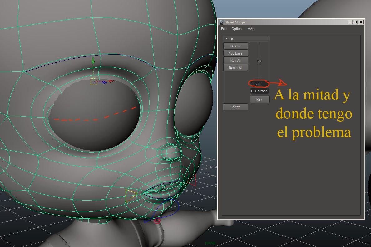 Hola, la situación es que, al realizar el cierre del ojo el párpado atraviesa el ojo hasta llegar a la posición final, recuerdo que se podía poner un intermedio con la deformación del ojo al 50%cerrado por así decirlo, pero no recuerdo cómo se hacía, en 3ds Max con los Morpher es fácil, pero en Maya no recuerdo cómo es, alguien me puede ayudar, dejo imágenes.