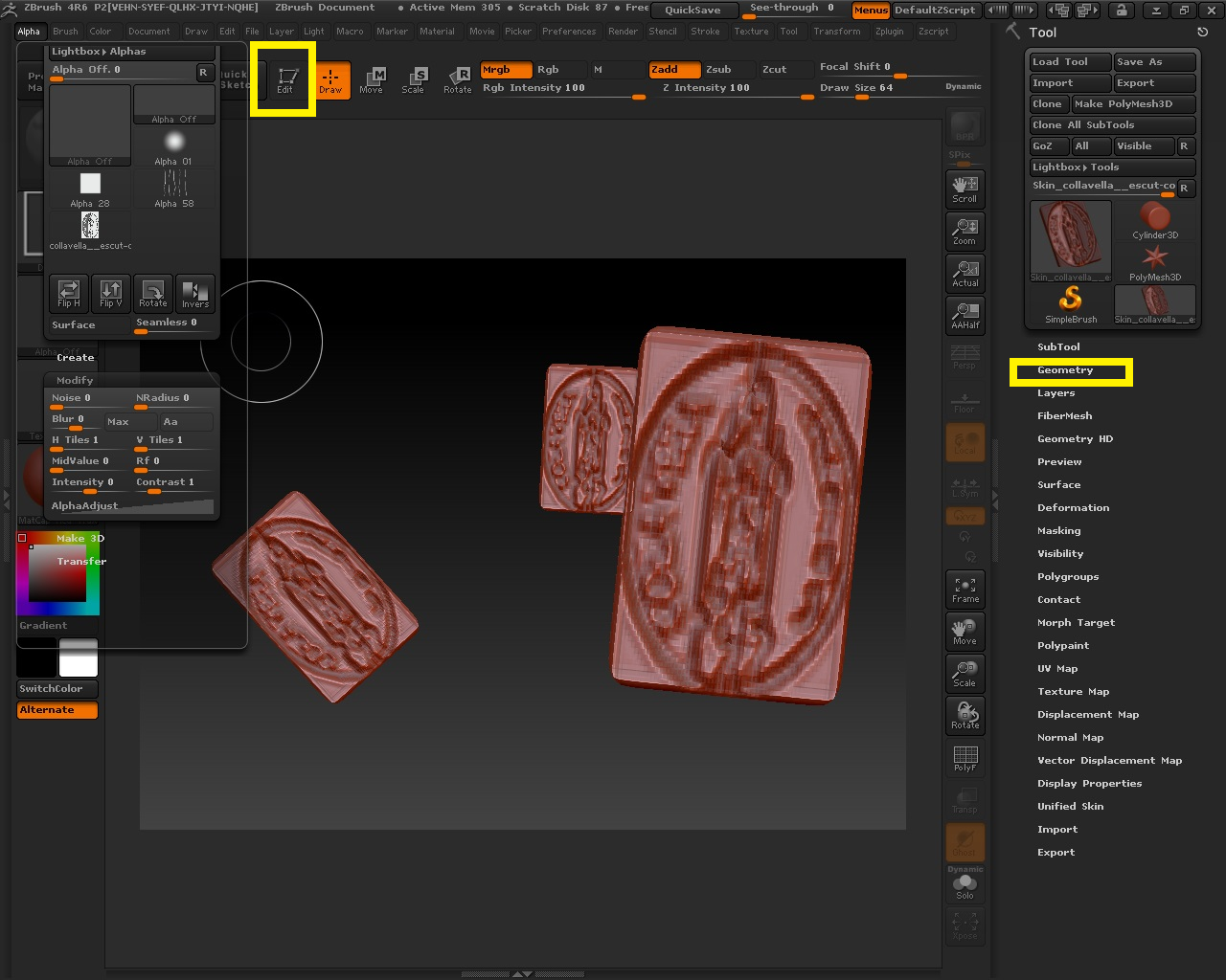 Hola a tod@s, quiero importar un logotipo al ZBrush y que se convierta en modelo para ya retocarlo, la definición técnica no sé cómo se llamaría, por a qui encontré que lo hacéis con panel Alfa al botón make 3D y se crea bien lo puedo modelar, pero se ve muy mal con muy poco detalle solamente de aprecia un poco la silueta, en ese mismo panel de alpha modifique de mil maneras las barras y nada, aparentemente sigue igual, la imagen es 1770x1800os adjunto unas fotografías para qué veáis si lo estoy haciendo bien o es que no se puede realizar, muchas gracias.