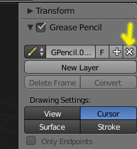 En Grease Pencil tienes una opción que es borrar, y si lo quieres quitar del todo pinchas sobre la X del Grease Pencil donde lo has creado.
