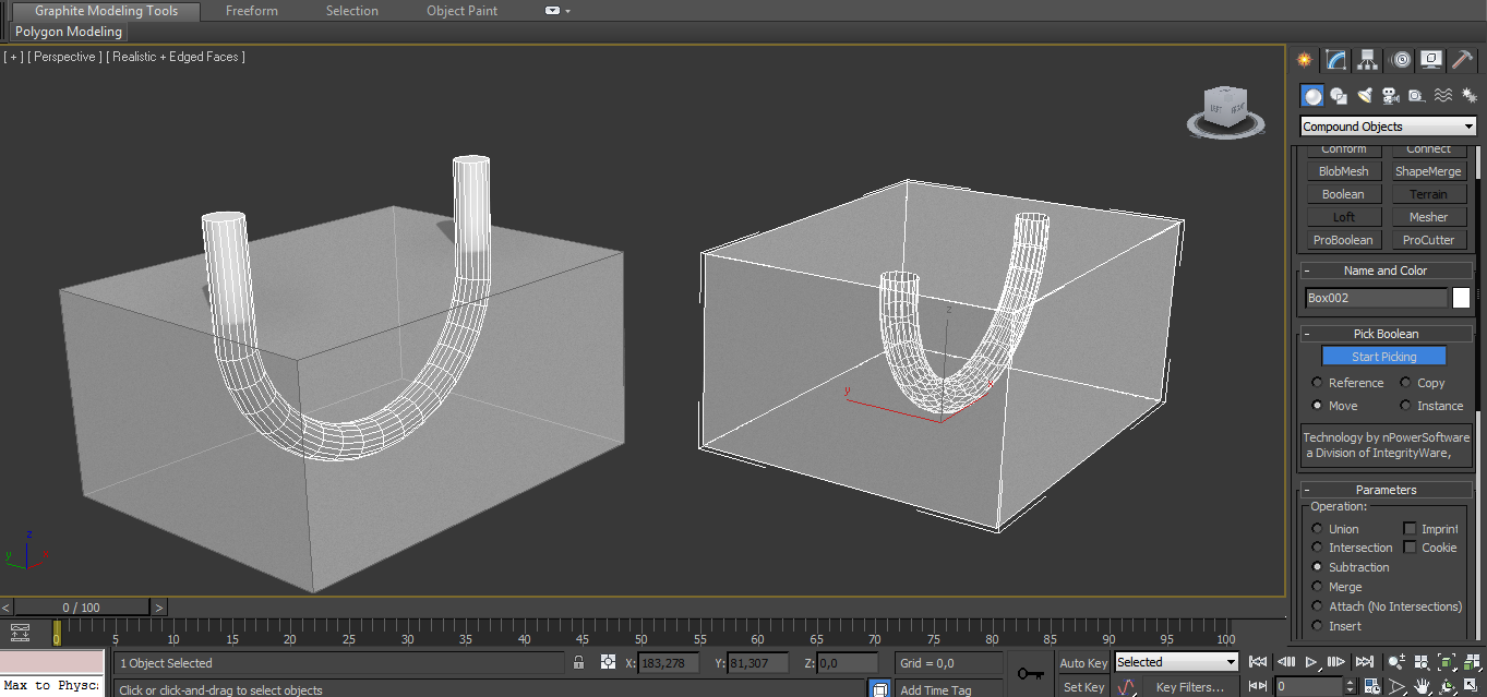 Como puedo hacer el negativo de un modelo que haya generado en 3ds Max. Por así decirlo, substraer, por ejemplo, un toroide a un cubo, os adjunto imagen.