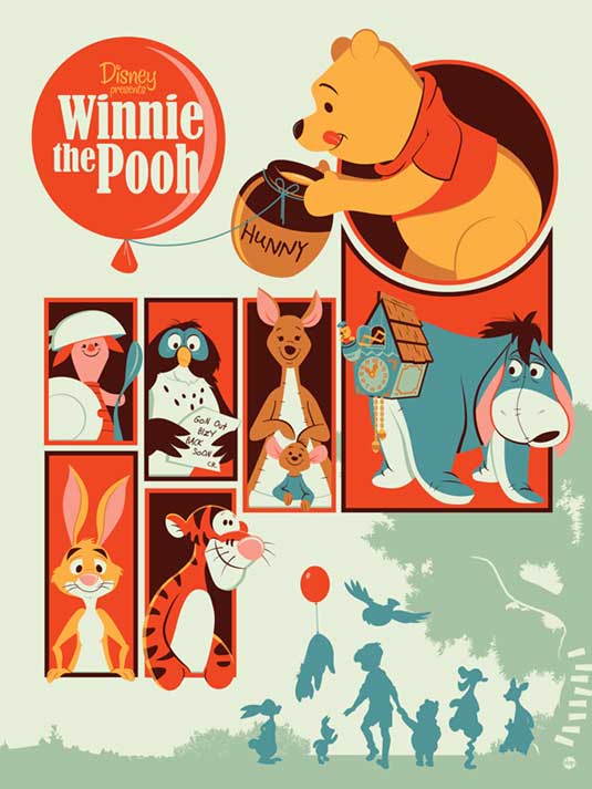 Cartel de Dave Perillo que rinde homenaje a Winnie the Poh, de 2011, en la que el adorable oso hace un bienvenido retorno a nuestras pantallas de cine, en la quinta película de Disney basada en los libros de A Milne.