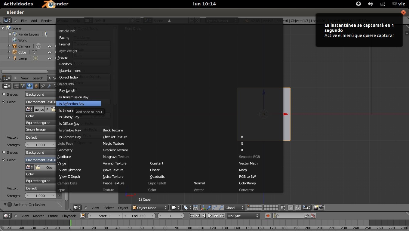 Dentro de Cycles vamos a la opción World y seleccionamos Mix Shader, tenemos dos campos Shader para utilizar, en el primer Shader elegimos la opción Background, en el apartado de Color, vamos a buscar y seleccionar Environment map, ahora ya podemos cargar la imagen correspondiente.