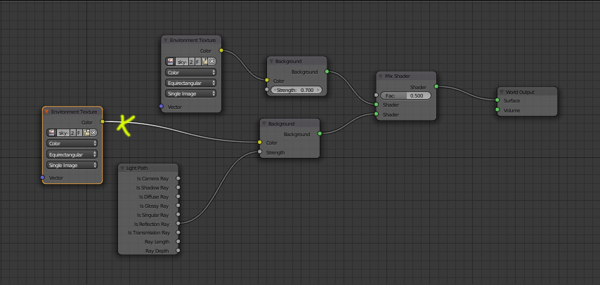 En el segundo Shader repetimos el mismo proceso, pero en el apartado Strength elegimos un light path para personalizar la iluminación a nuestro gusto y según nuestra escena.