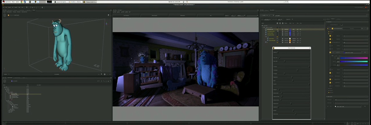 Vrender es un procesador de volumen desarrollado por pizar, y hablan sobre el trabajo que están haciendo con la subdivisión de superficies, específicamente la API OpenSubDiv que utiliza técnicas de triangulación para mostrar de forma interactiva superficies lisas complejas.