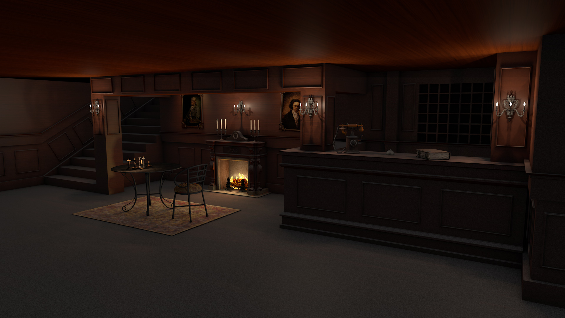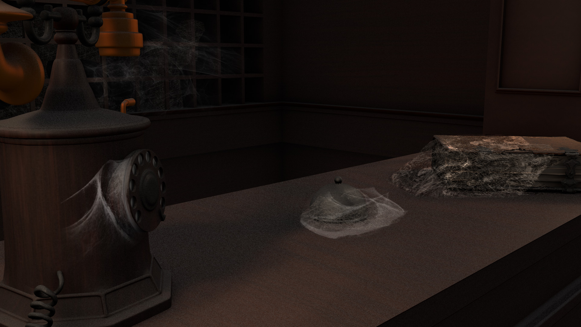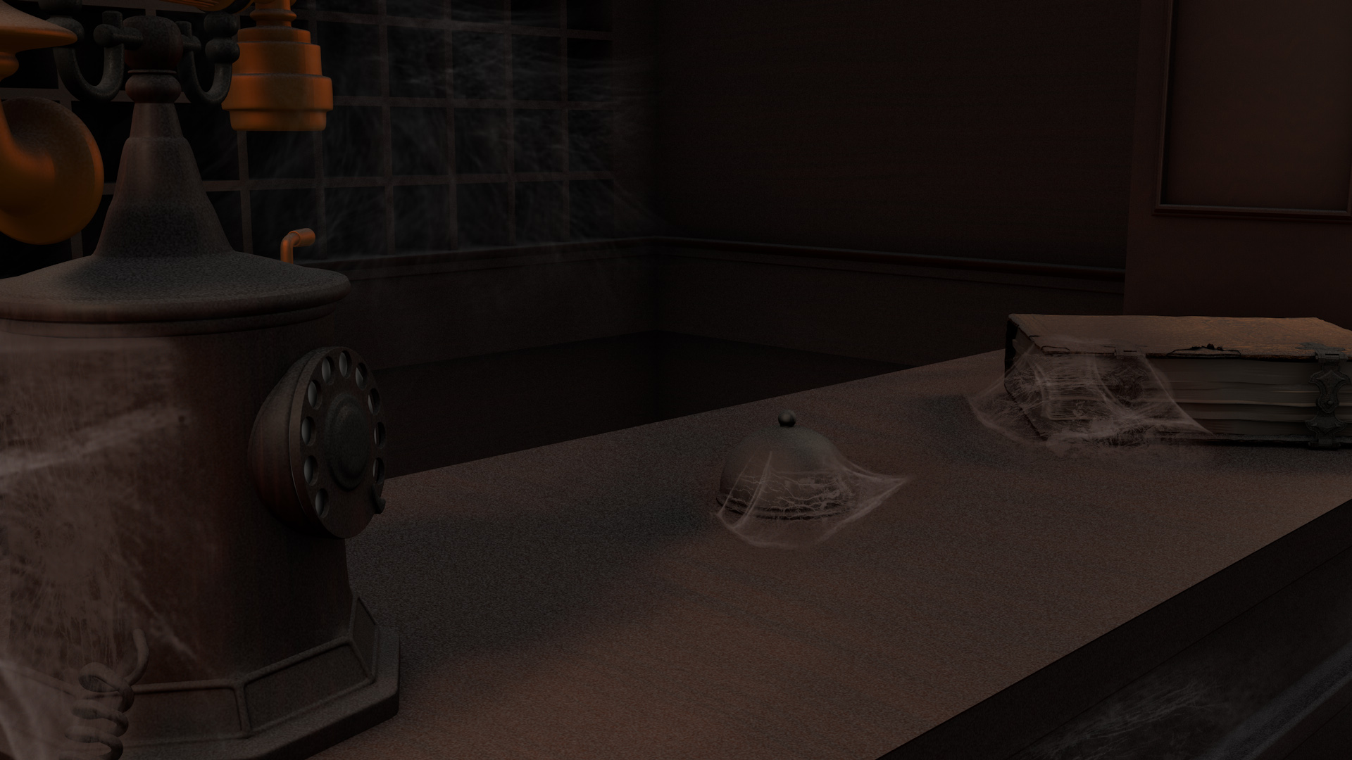 Coincido en que lo que más me gusta de este trabajo es el ambiente que has conseguido. Me gusta el modelado, la iluminación y el cuidado de los detalles, como las telas de araña o el polvo acumulado sobre las superficies. Quizá yo le hubiera dado algo de textura a la madera con un ligero normal map, aunque estaría de más si es melamina.