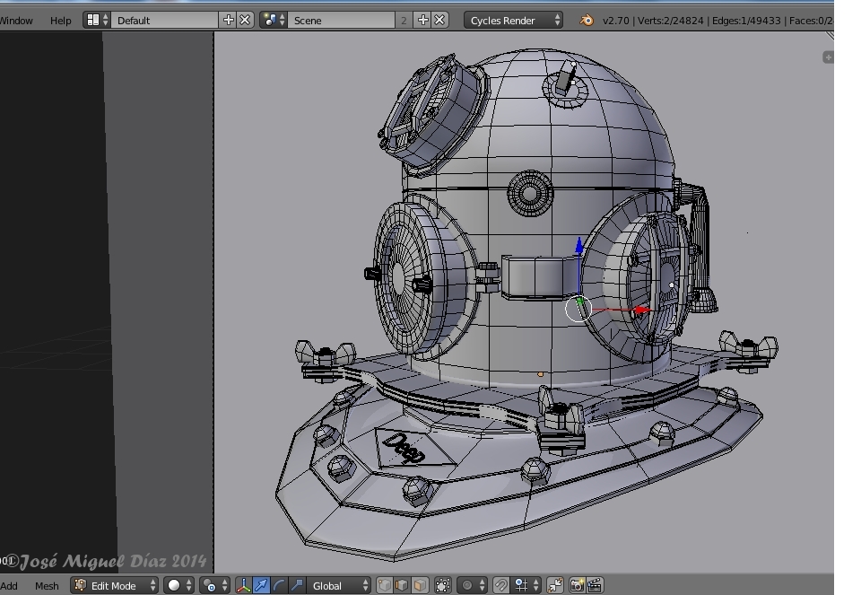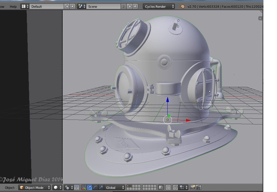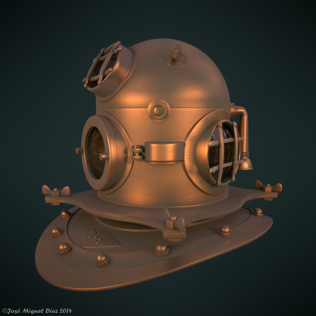 Casco de buceo de esos antiguos que eran en metal, 100% Blender.