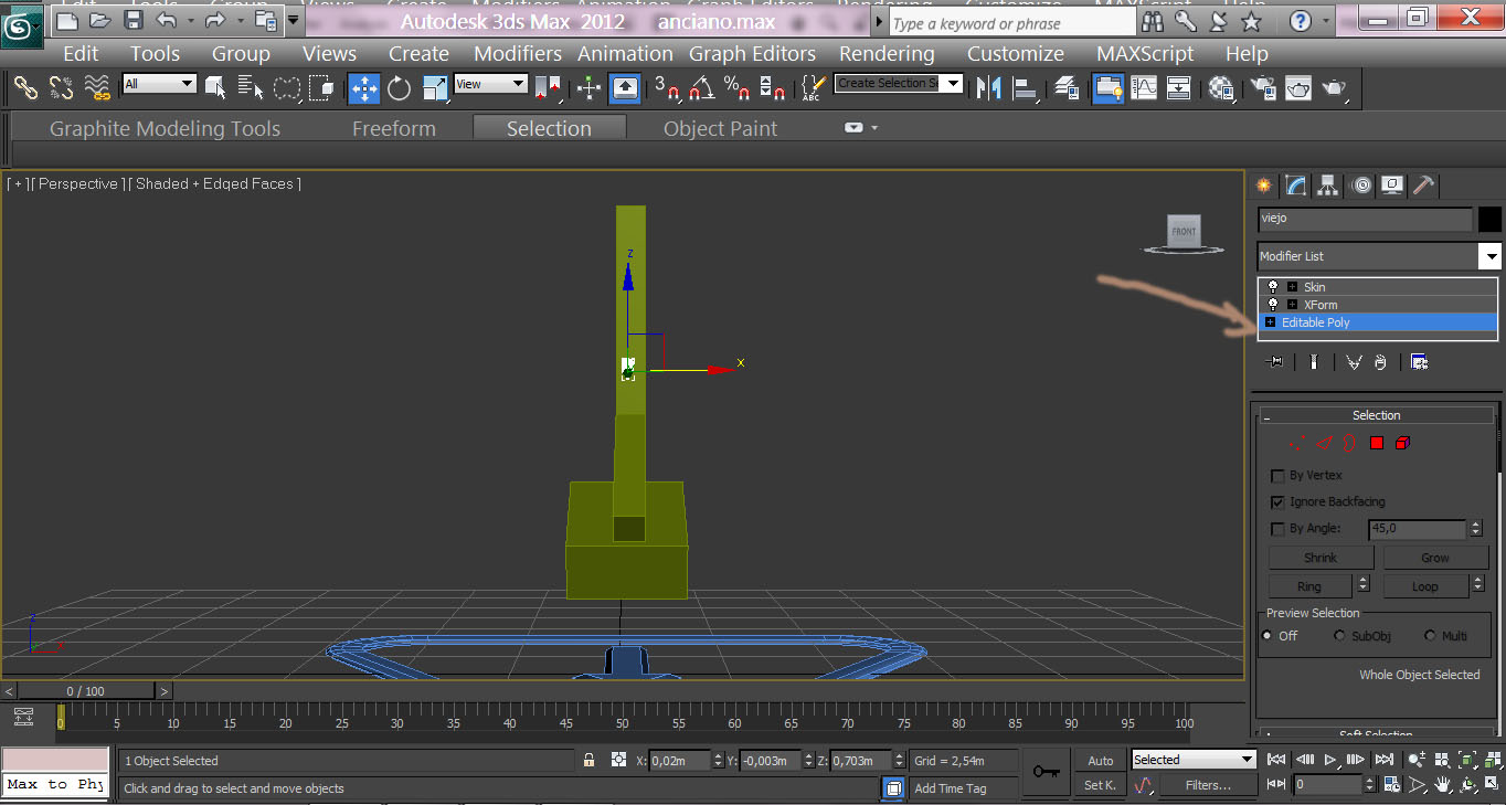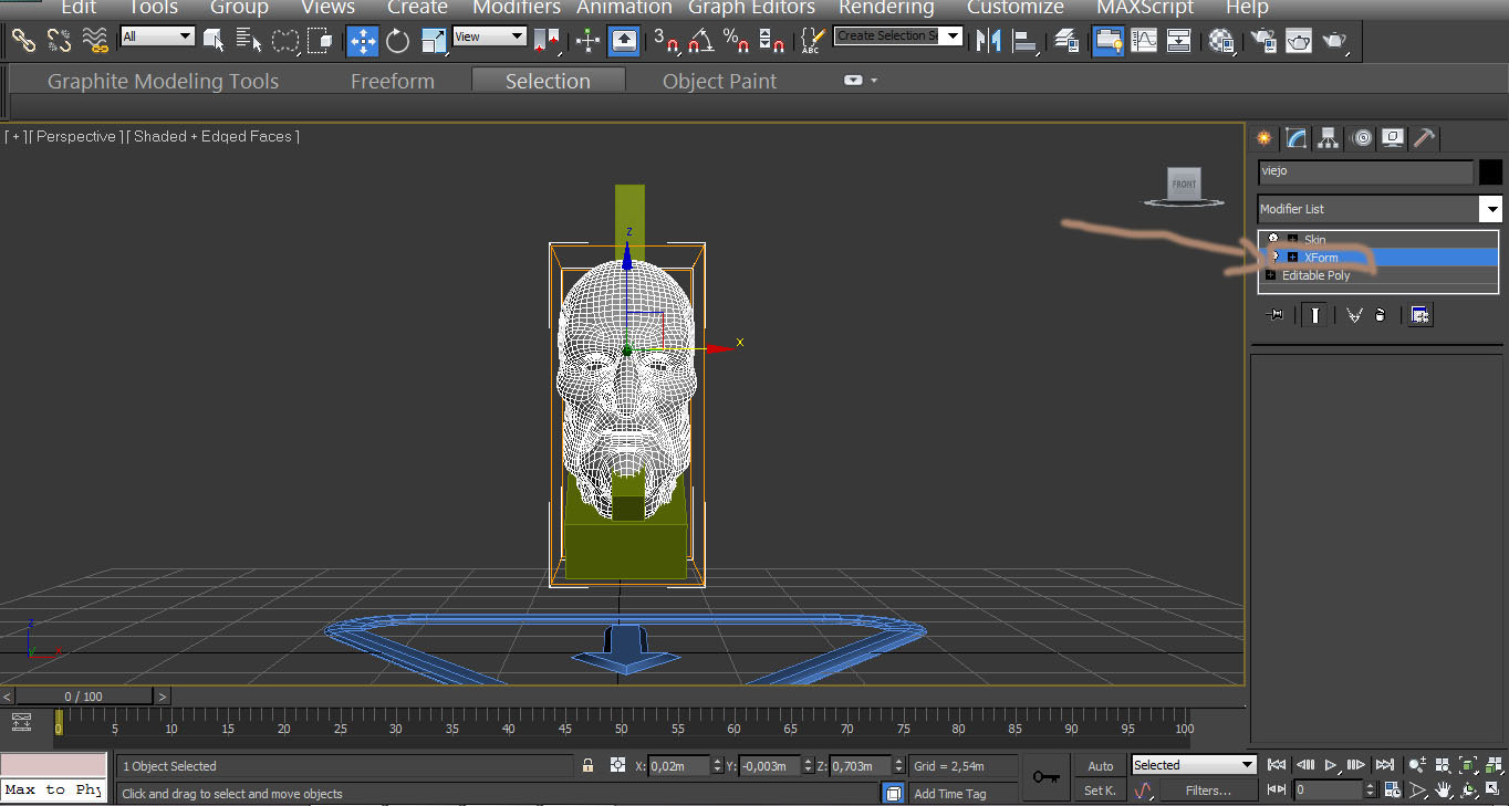 También utilizo XForm, pero cuando hago click en editable poly la cabeza se me pone como estaba desde le inicio es decir no centrada.