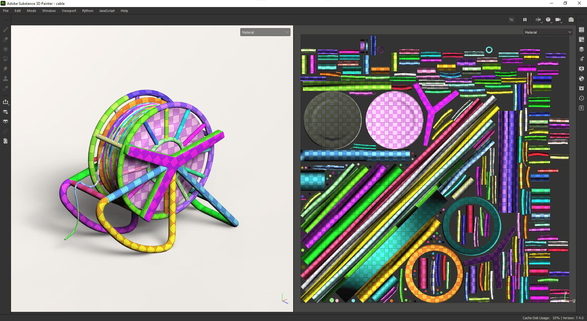 Esta versión trae una mejora a la función de desenvoltura UV automática de Painter, lo que le permite evitar islas alargadas. Anteriormente, las mallas que incluían formas como bandas o correas tenían una tendencia a desenvolverse automáticamente en islas extremadamente largas.