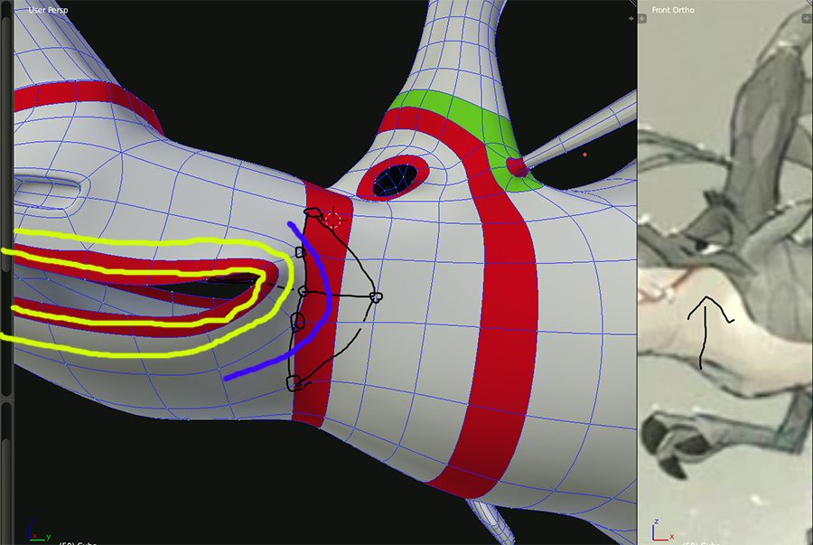 Para darle esa expresión, debo manipular la malla como esta, o cambiarla más o menos como eh puesto el pencil y ya después manipularla? Es que como las líneas no concuerdan me sale muy desforme. El modelo no va a ser animado.