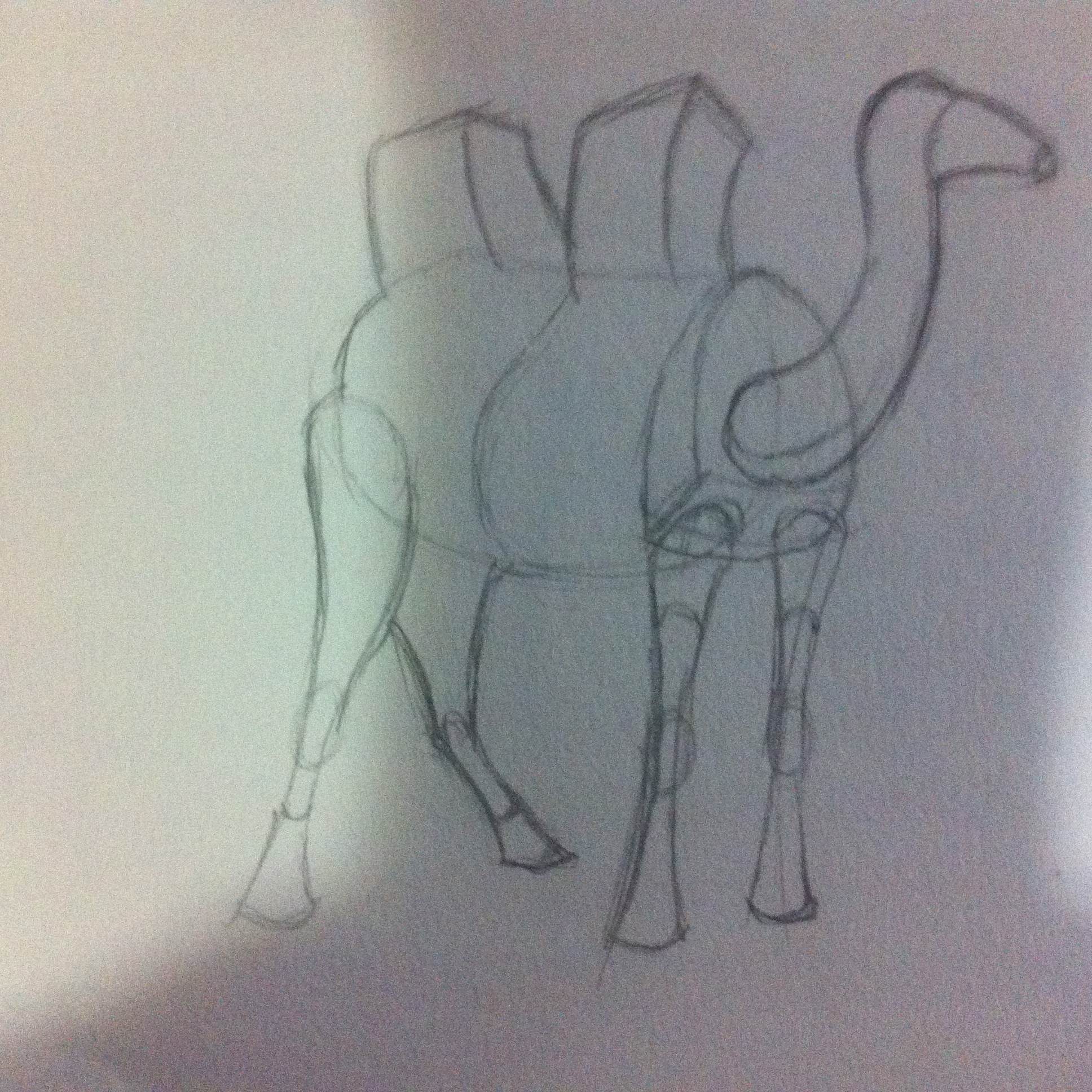 Descompone, el camello está mejor, pero ponle más líneas, las bases de los cubos de las jorobas.