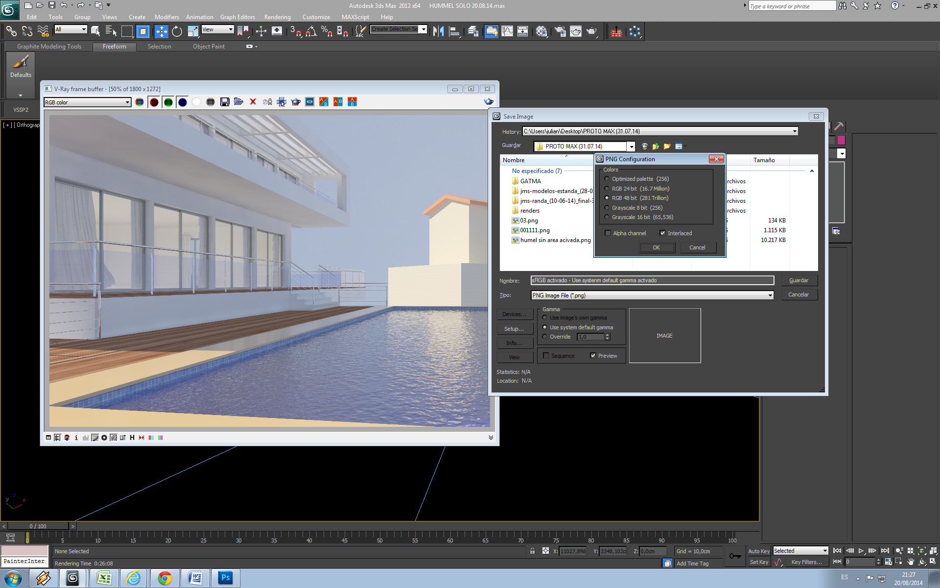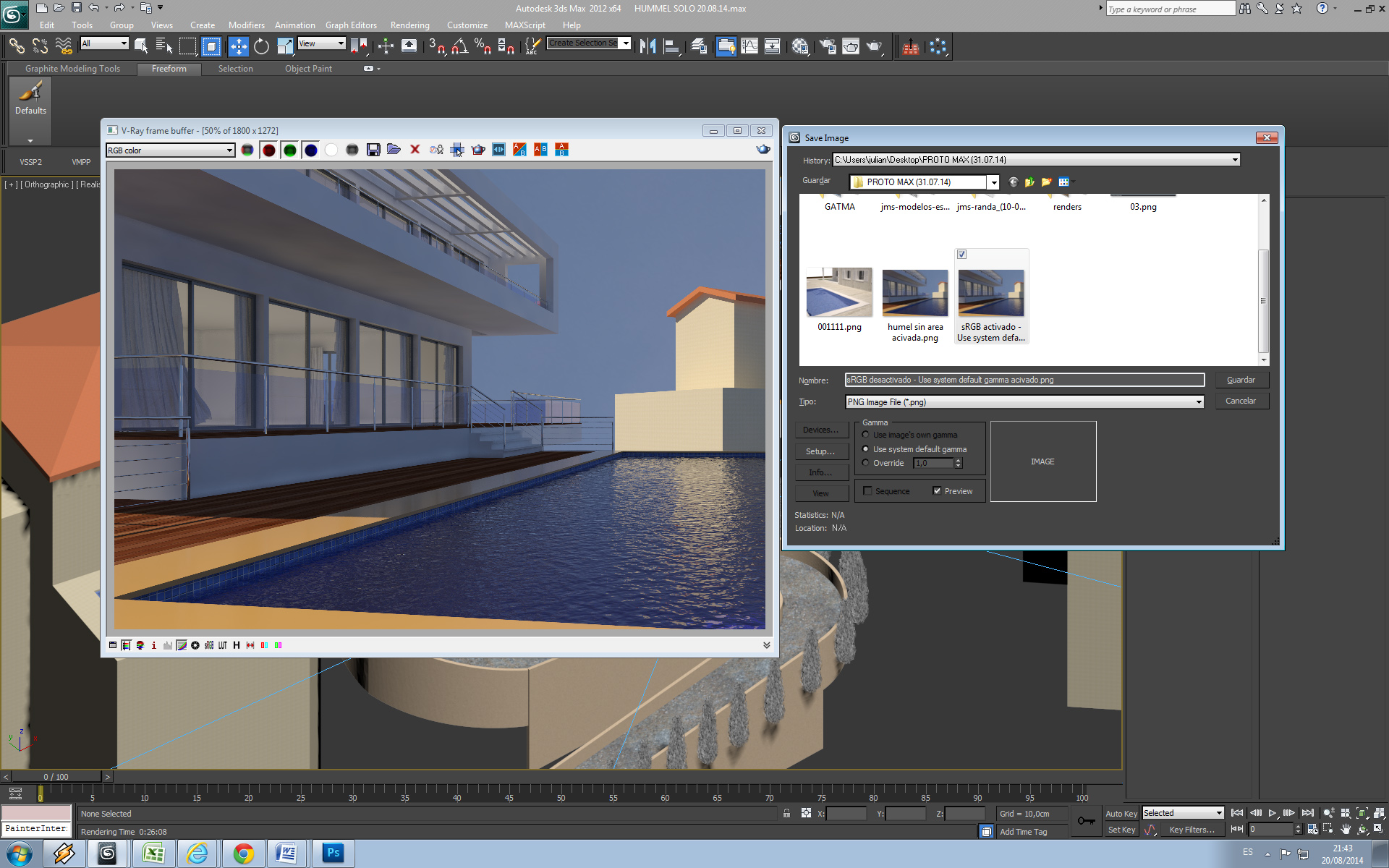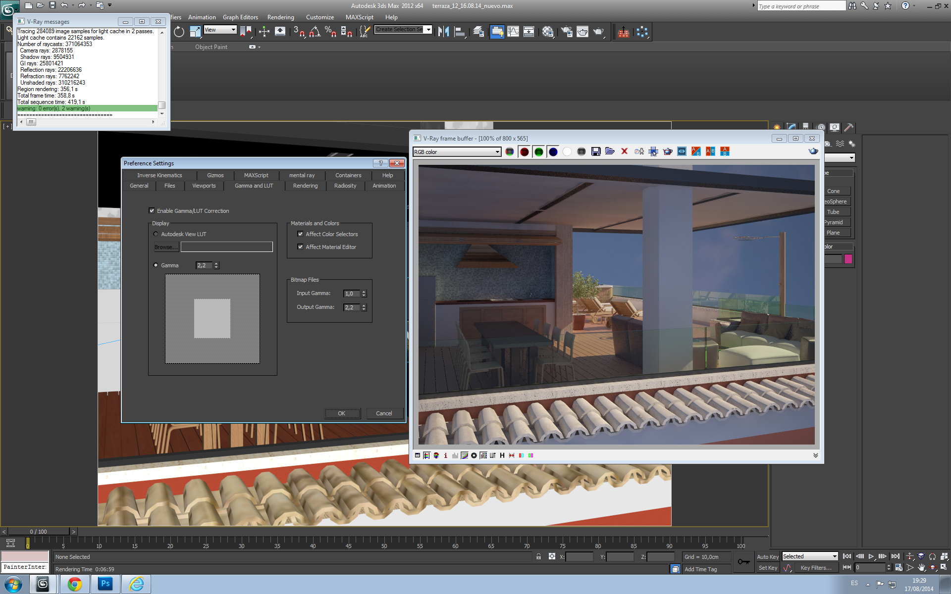 Estoy preparando otro modelo que tengo en marcha, aplicando el tema del gamma antes mencionado, lanzo un render termina, como estoy en pruebas guardo solo el RGB como veis en la imagen la imágenes sRGB activado - Use system default gamma acivado.jpg y sRGB desactivado - Use system default gamma acivado.jpg, hay notable diferencia.