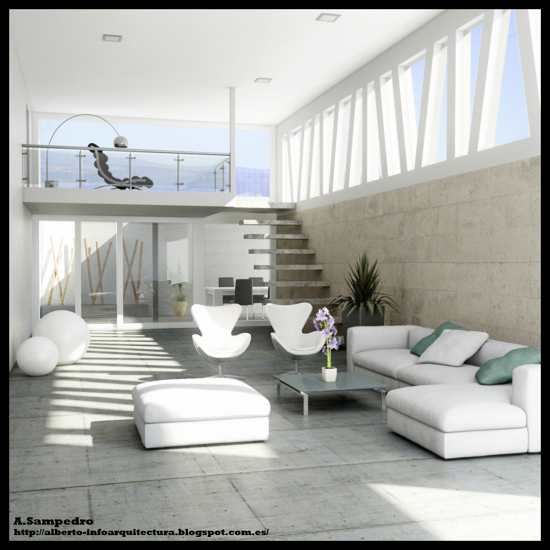 Lo primero que debes ajustar un poco es el ruido de la escena, en especial el del cristal de la mesa y el de la maceta. Yo haría un poco más y movería un poco la planta qué está cerca de las escaleras (parece que esté nada más arrancar la escalera). Pondría un poco más de cuidado a las cristaleras de la planta superior. Les falta algún tipo de marqueteria o perfileria para darle un poco más de realismo. En la cristalera del fondo de arriba también, prueba a hacer tres paneles que no parece muy real tener un cristal de 5pregunta de largo y abre uno de ellos para qué se vea el contraste con el fondo de la escena. También utilizaría algún fondo con un poco más de calidad. Por último, modelaría algún tipo de maneta para las puertas de abajo y pondría algún encendedor o toma de enchufe.