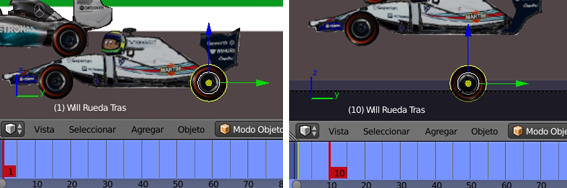 El la primera imagen doble, se ve lo que ocurría con las ruedas al animarlas para él giro.