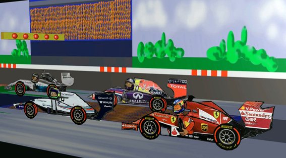 Los fondos, los coches y las cabezas de los pilotos también son planos 2D.