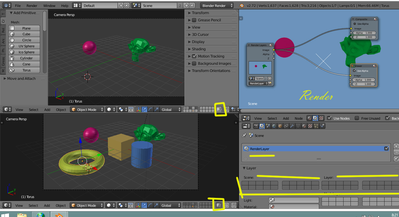 Para que utilizáis el botón central con Blender Botón equivalente para rotar la linea central de dos cuadrados en Blender