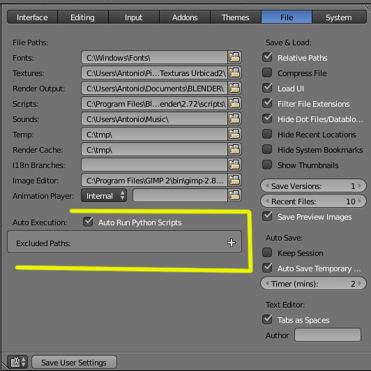 - Al abrir el documento pone en la barra superior Auto-run disabled text rig_ui, py y dos opciones, reload trusted e Ignore.