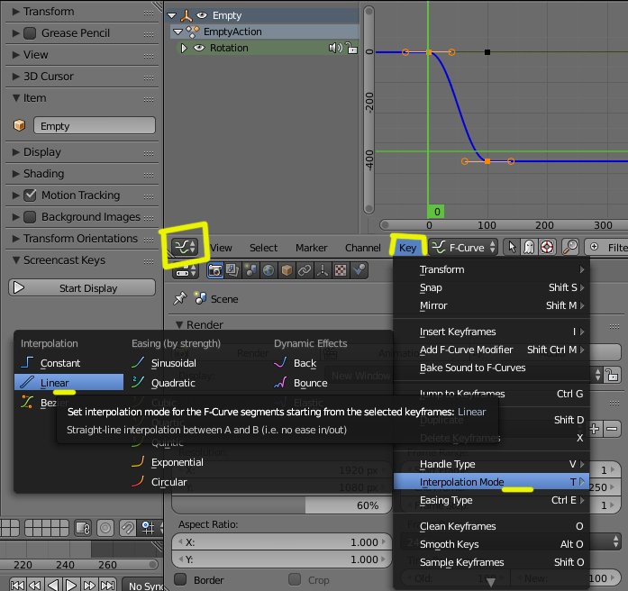 Por cierto, si quieres cambiar esa curva para convertirla en movimiento lineal (sin desaceleración al principio y final) elige la opción Key > Interpolation Mode > Linear.