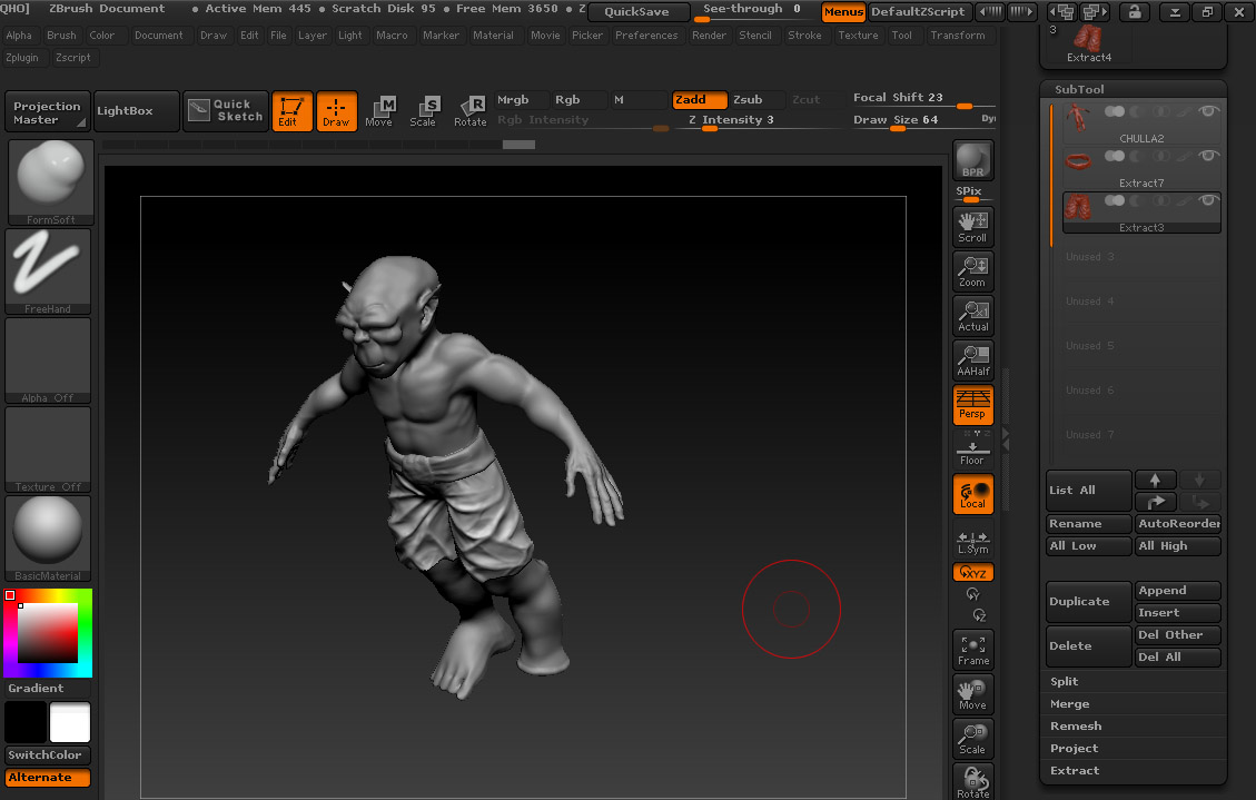 Estoy modelando un personaje, pero bueno aún no aprendo a usar bien el ZBrush y tuve problemas para guardarlo, al final eso lo solucioné, pero quedo en una tol la ropa qué había modelado y en otra quedo lo que llevaba de el personaje, ahora no sé cómo pasar todo en una misma, en la tol de la ropa hay 2 subtool un cinturón y un pantalón corto, en la otra solo está el personaje.