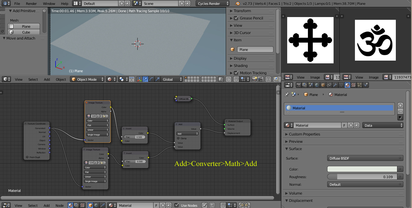Hola a todos.Quiero aplicar dos texturas, en B/N, como bump y quiero controlar cada una por separado. El caso es que cada una conectada al Desplazamiento sí que funciona, pero cuando las uno con un nodo de Mix shader, no actúan para nada. He probado con Color Ramp y tampoco he conseguido nada.