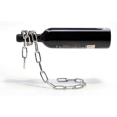 Aquí Hola amigo, en principio buena idea, yo le engrosaría los eslabones pues no pueden sostener al peso de esa botella aún por muy bien soldados