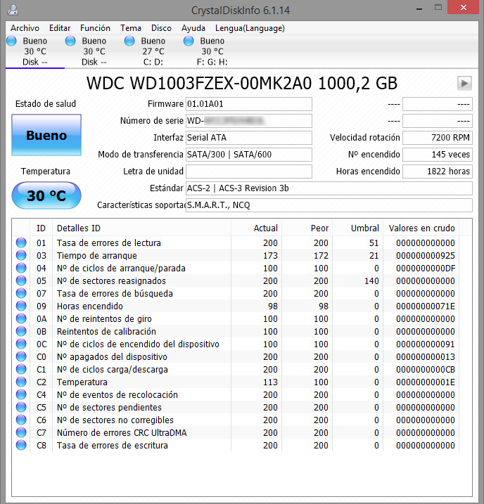 En las fotografías muestro la temperatura en reposo y la máxima alcanzada después del formateo de 3 horas, muy fresco este disco comparado con la versión anterior.