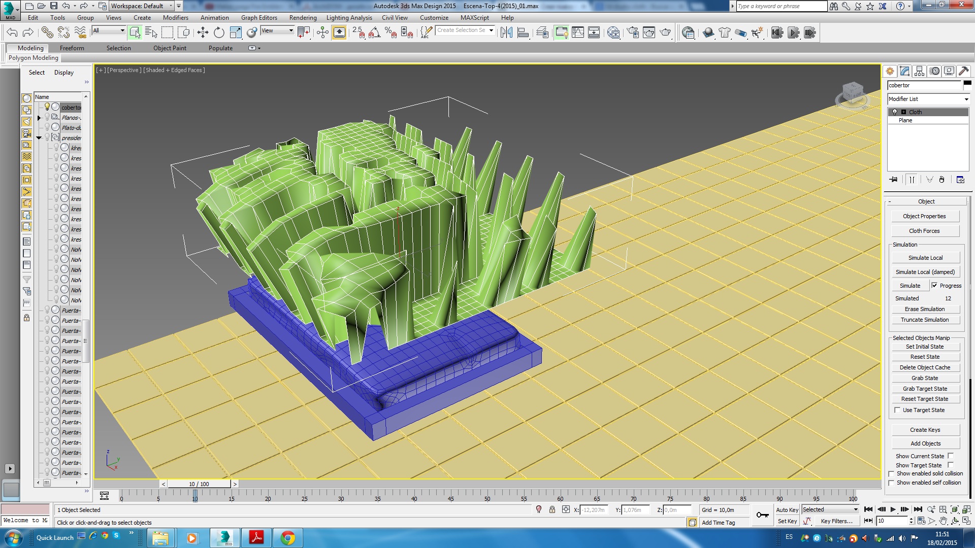 Entonces le aplicaría el Cloth y en Object Properties configuraría el Rectangle como Cloth>Cotton y el colchón y su soporte como Inactive>Collision Object