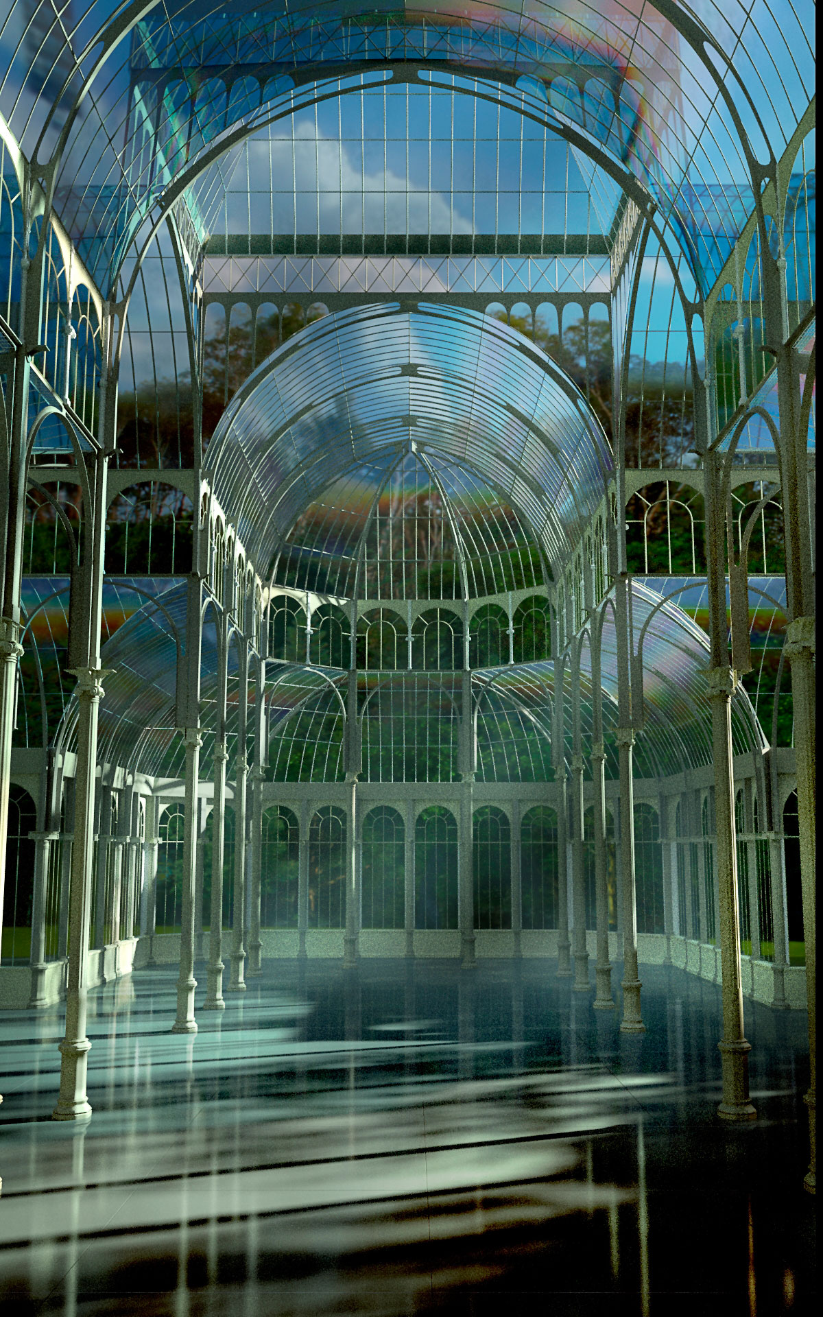 Se trata del palacio de cristal que se construyó en el paseo del retiro de Madrid en 1887 con ocasión de la Exposición de las Islas Filipinas, y su autor Ricardo Velázquez Bosco se inspiró en otro construido en el Hyde Park de Londres en otra exposición.