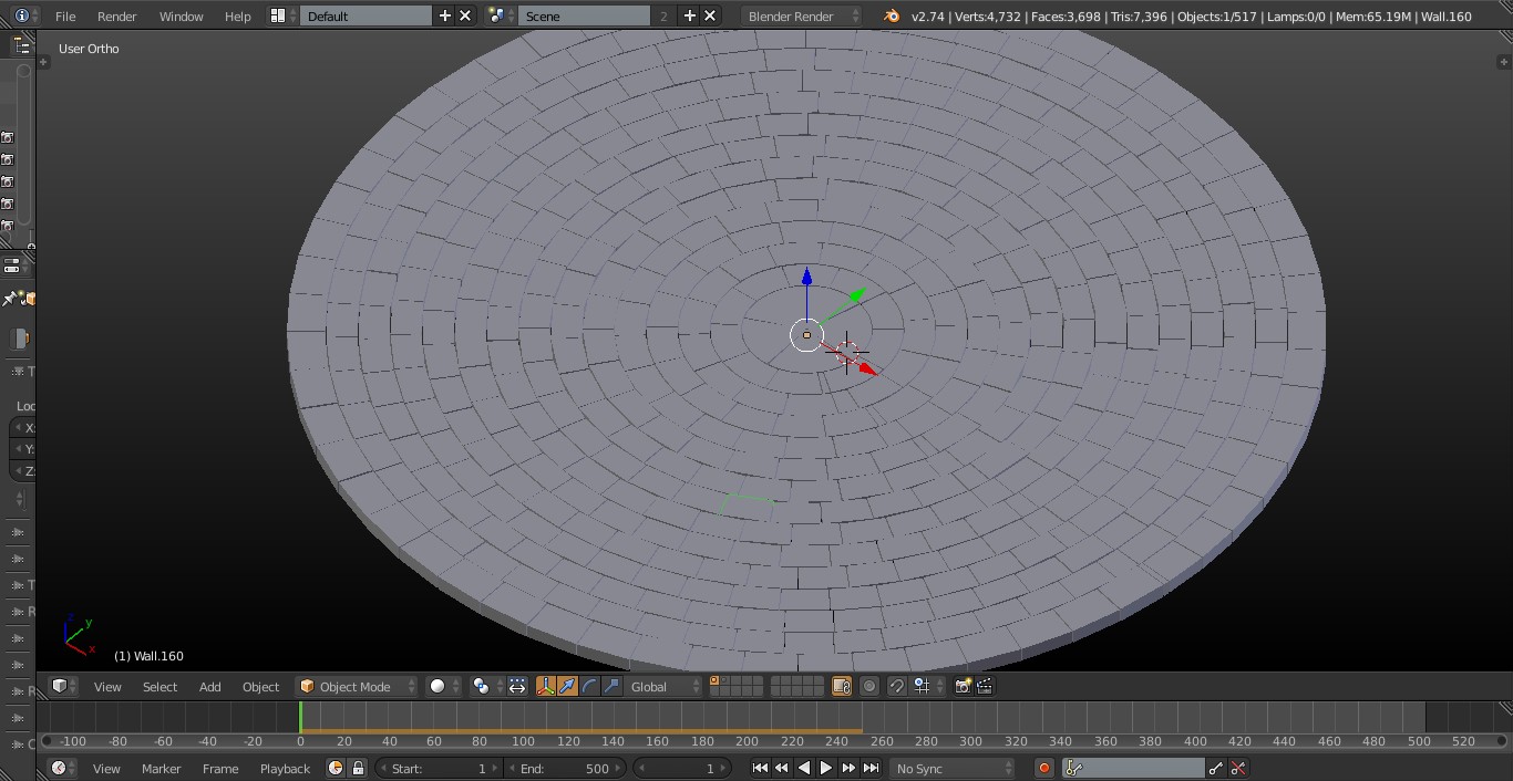 Es una malla sacada del add-on building objects>wall factory y luego separadas las losetas en edición, para dejarlas caer y a ver ellas solas lo que saben hacer.